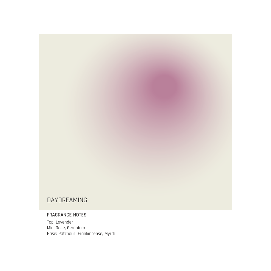 ラベンダーとゼラニウムの温かみのある香りが夢の中にいるような感覚に導き、フランキンセンスの香りがほんのりと落ち着きを取り戻させてくれる優しさに満ちた香り。